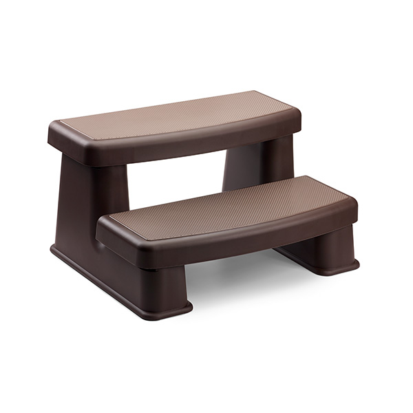 Two-tone steps with treads in four different color options to match spa cabinets.