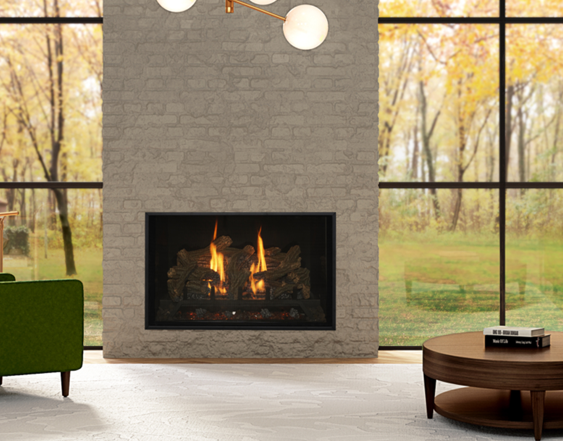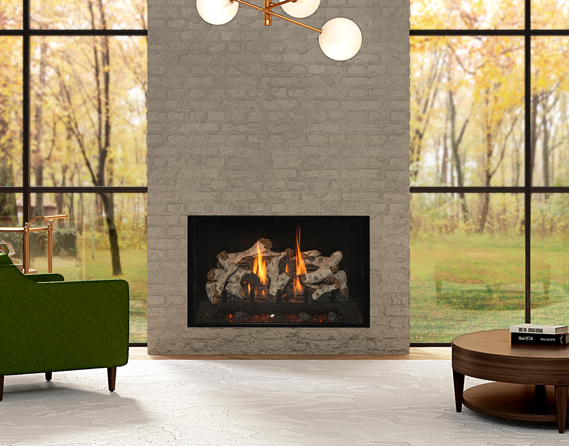 There are many standard features to enjoy with the Bellingham 38 gas fireplace. The viewing area is 38-7/16” x 24-7/8”. With NG the input is 43,500 High/17,000 Low BTU/hr and with LP it is 49,500 High/16,500 Low BTU/hr.