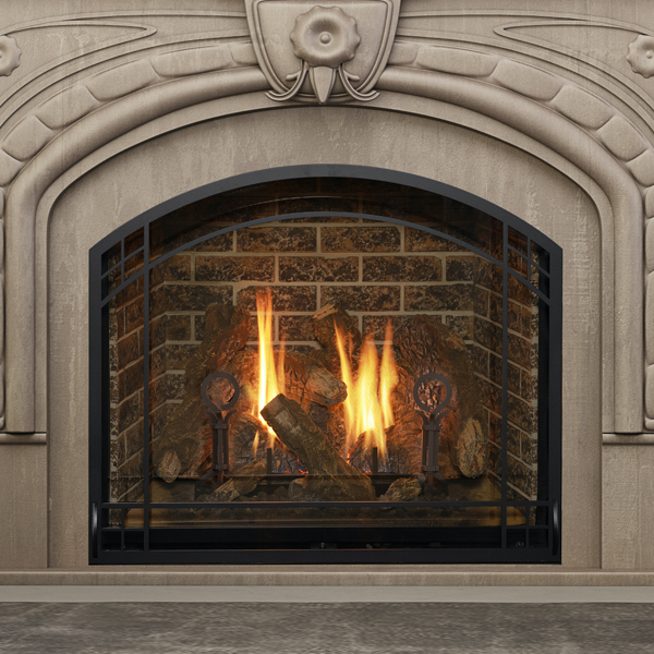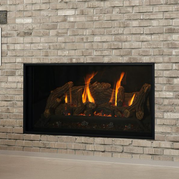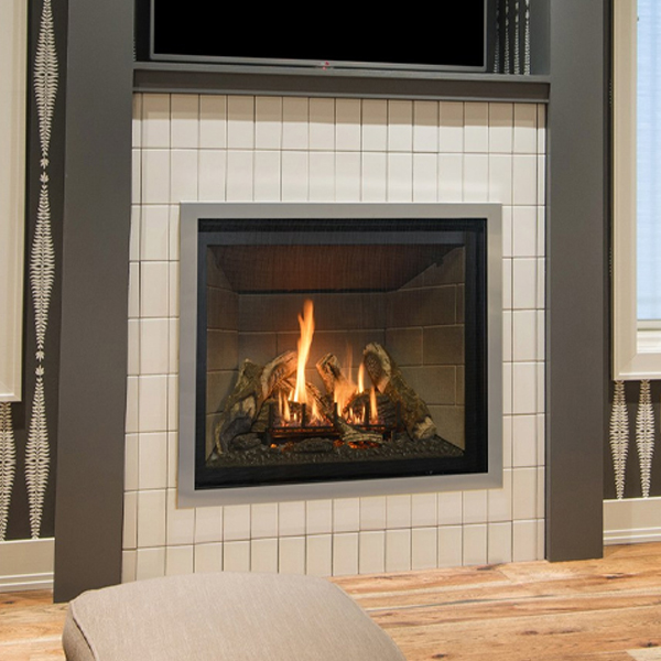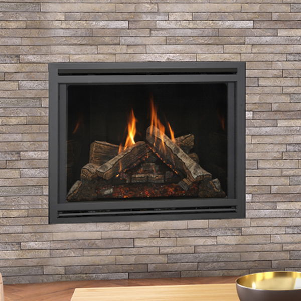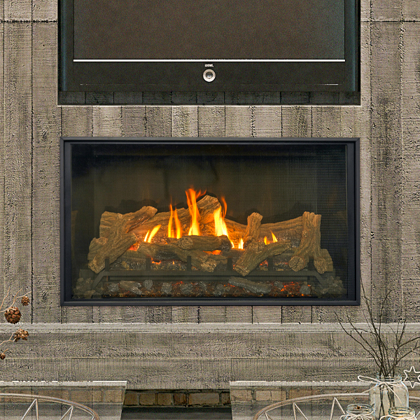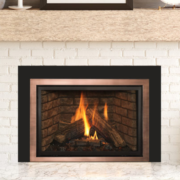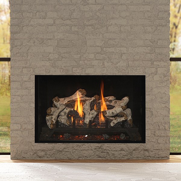 Your design begins with an included safety screen front. Select one of 3 burn media options: Reflective Midnight Crushed Glass, Reflective Copper Crushed Glass, or Lava Rock. Select one of 4 media options: Traditional Logs, Birch Logs, Beach Accent Kit, or Rock Media Kit. Select one of 3 refractory options: Chicago Style Brick, Ledgestone Style Brick, or Black Glass Panels. Select one of 6 perimeter options and one of 7 surrounds to finish your unique statement.