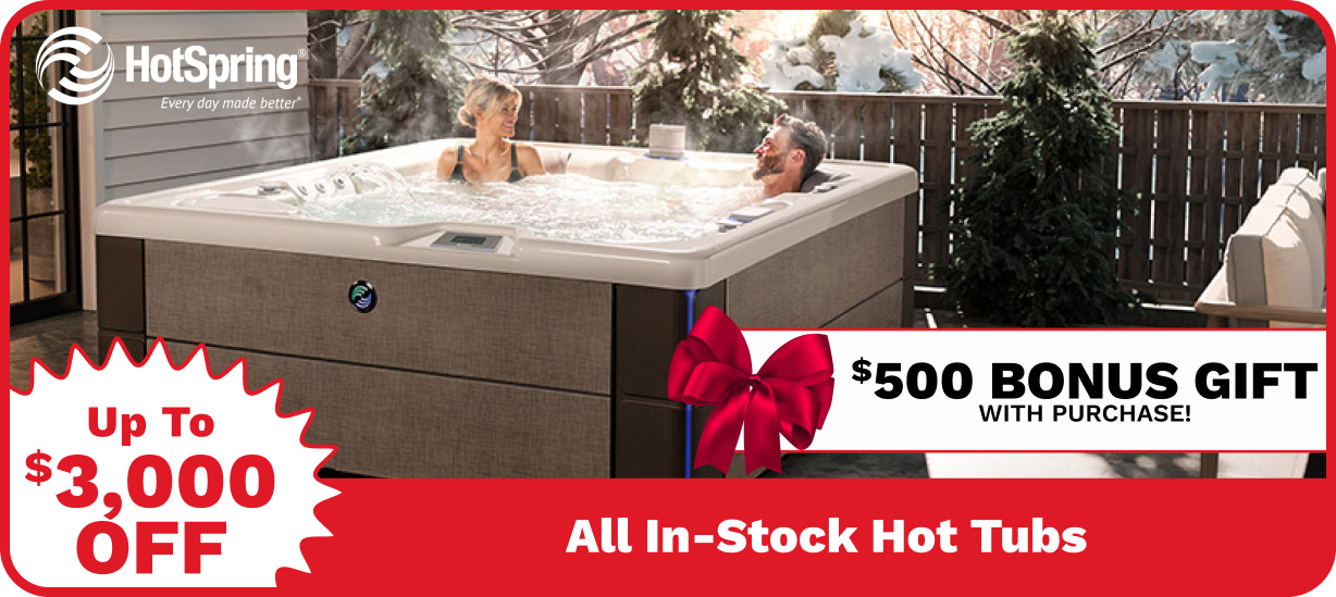 • Last Chance! Up to $3,000 off hot tubs