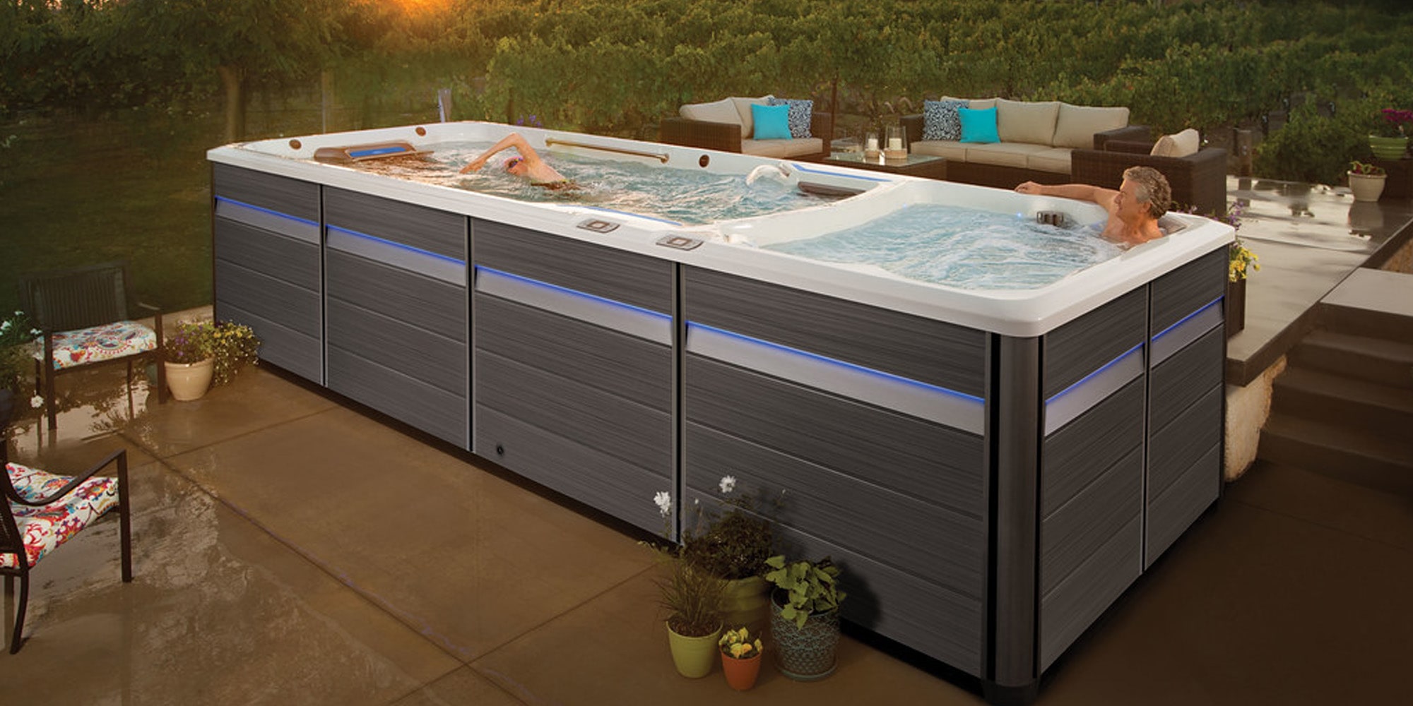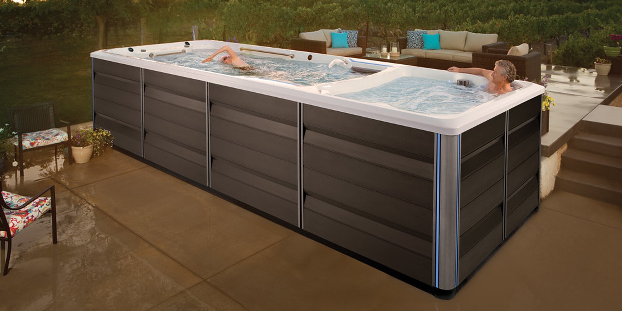 Featuring one of the leading brands of swim spas in America, IHT’s Endless Pools® models deliver endless fitness and enjoyment. Browse our beautiful gallery of Fitness Systems, Exercise Systems, and Rec Systems to see an array of swim spas perfect for your home. With upgraded options for care, maintenance, and comfort, as well as a powerful swim current for the epitome of aquatic fitness, you’ll find that Endless Pools models stand head and shoulders above the competition. Swim spas are one of the best ways to bring home the incredible experience of aquatic fitness. It’s like having a backyard gym right in the comfort of your own home! With additional options like a rowing kit, underwater Aqua Bike or treadmill, aquatic weights, resistance bands, paddles, and more, you can have an all-in-one space for the perfect low-impact, high-result workout experience. And when you want the ultimate in relaxation, jetted seats whisk away pain and stress leaving you feeling refreshed and renewed. Check out our gallery of inspiration to find your favorite model today.